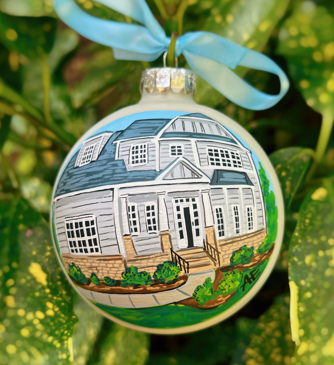 Shop custom hand-painted house portrait ornaments. The perfect gift for a moving family, new homeowners or anyone else on your list!